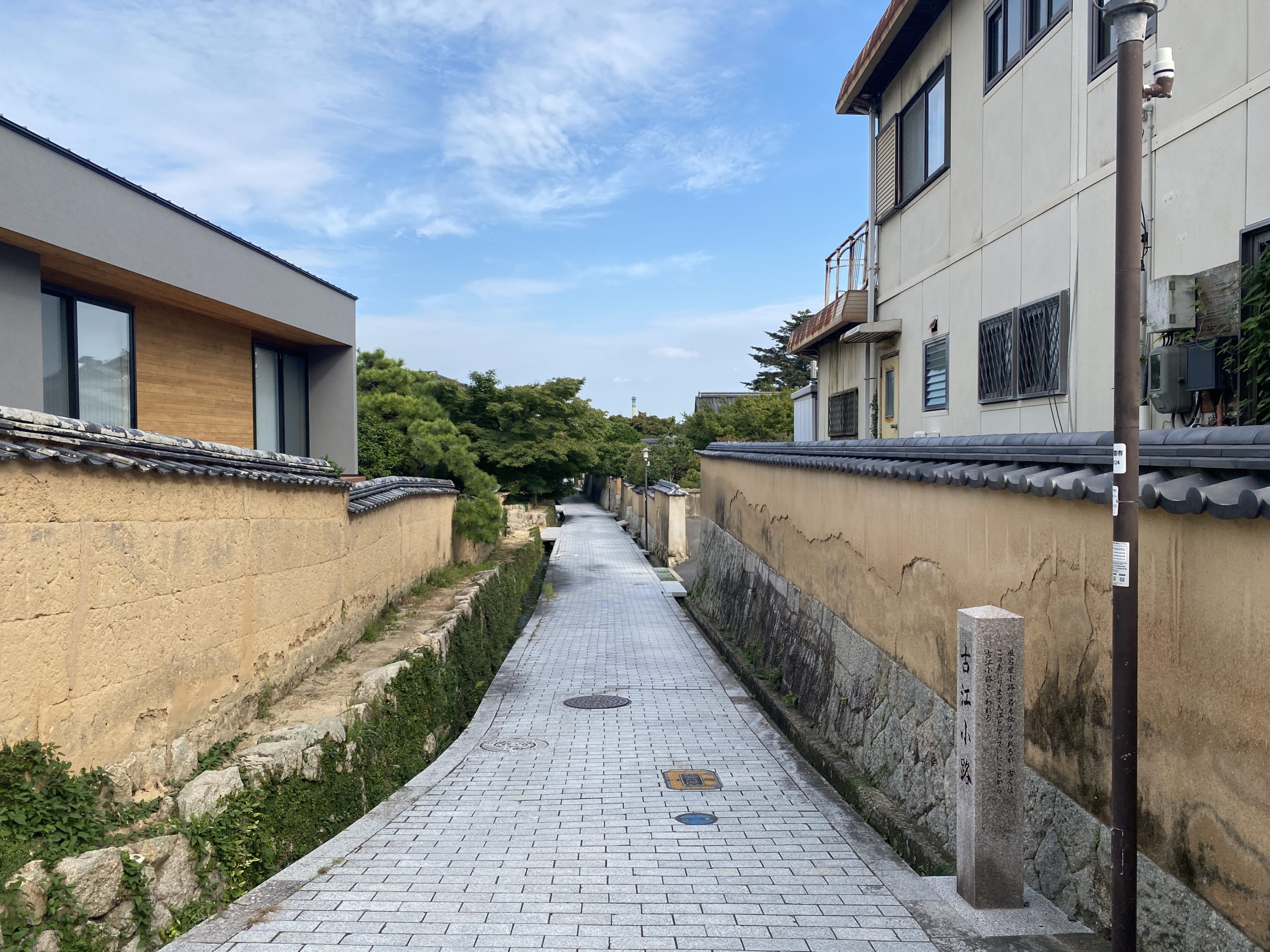 また、敷地は、美しき古江小路沿いの角地となります。江戸時代などの土塀や石垣が今も残り、石畳の路面が一層雰囲気を演出し、まるで非日常的な世界にいるような、維新のロマンや長府城下トラディションを感じるさせる美しい通りだと思います。