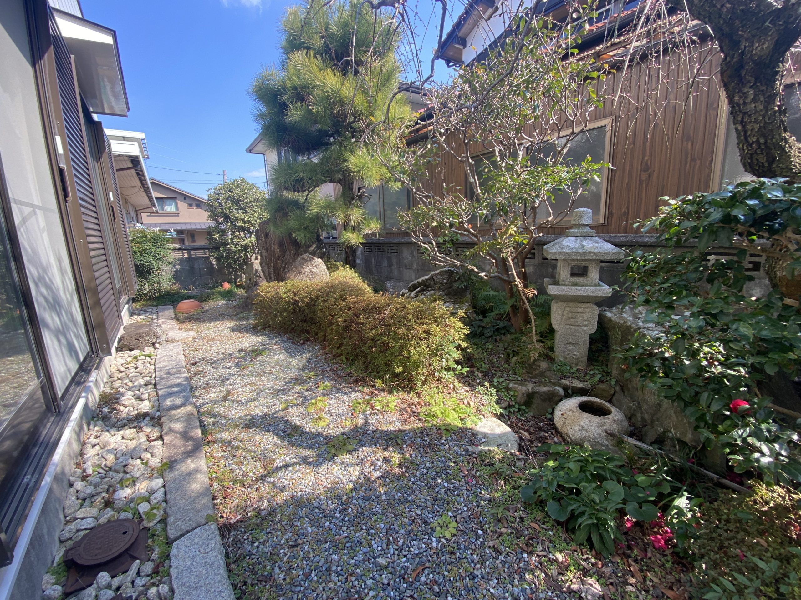 他にも特色として、多めの収納、2ヶ所トイレ、駐車2台可能等があります。お庭は和のテイスト、室内は和洋折衷のテイストとなっており、非日常的で優雅な雰囲気や別荘的な雰囲気を感じ取れ、吹抜けと階段が建物の中心に設けられた余裕のある2LDKのお家だと思います。また、昨今、再開発が進みつつある新山口駅まで徒歩約15分程度にあり、ミドル的な高台に位置しています。